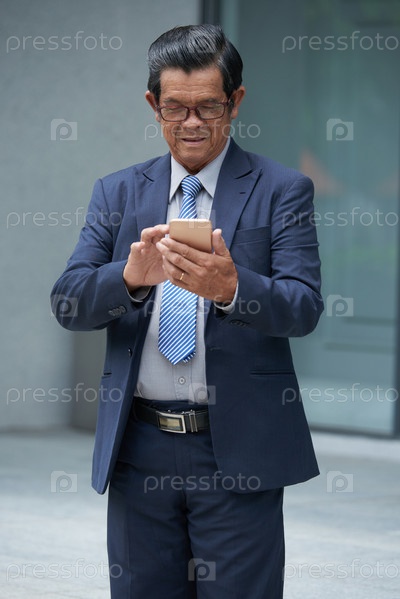 Бизнесмен читает сообщения и уведомления