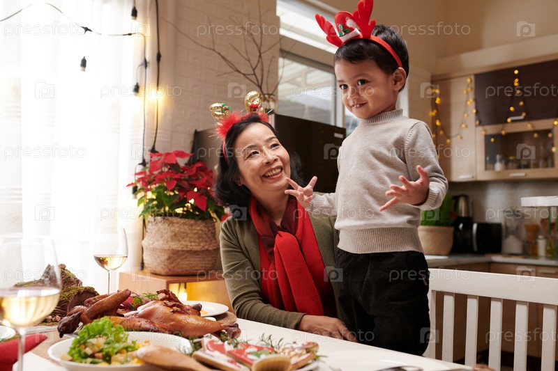 Гордая бабушка слушает внука