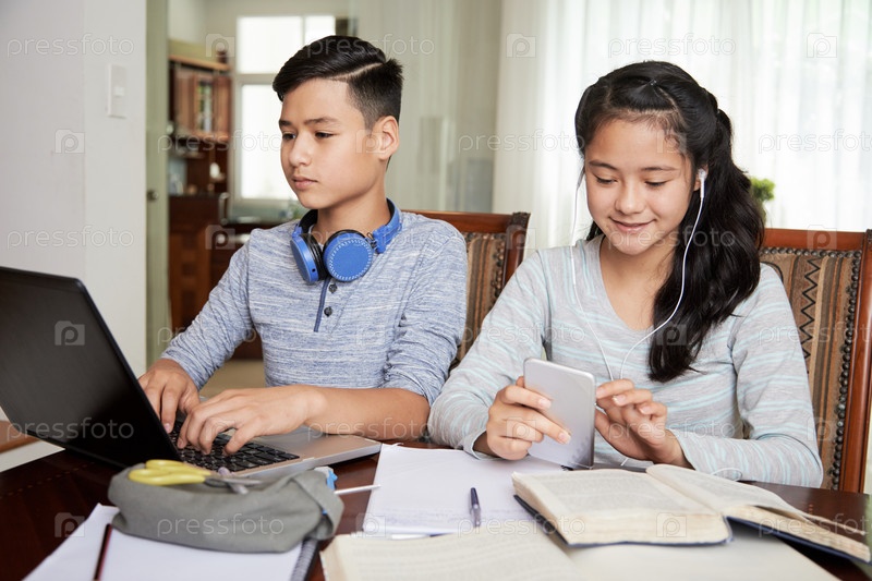 Подростки делают домашнее задание