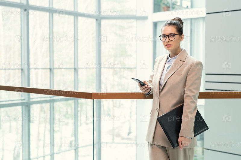 Молодая менеджерка в бежевом костюме