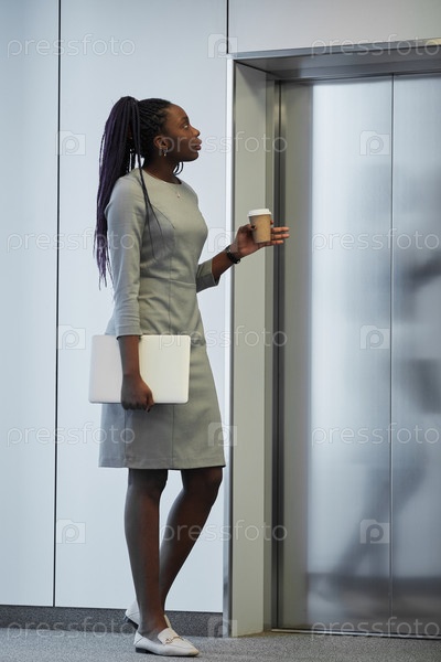 Африканская бизнесвумен, ожидающая лифта