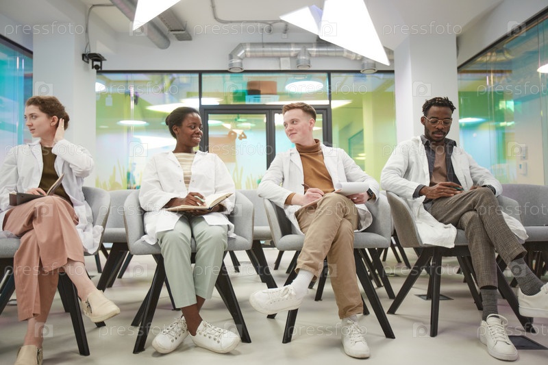 Разнообразная группа студентов-медиков в семинаре