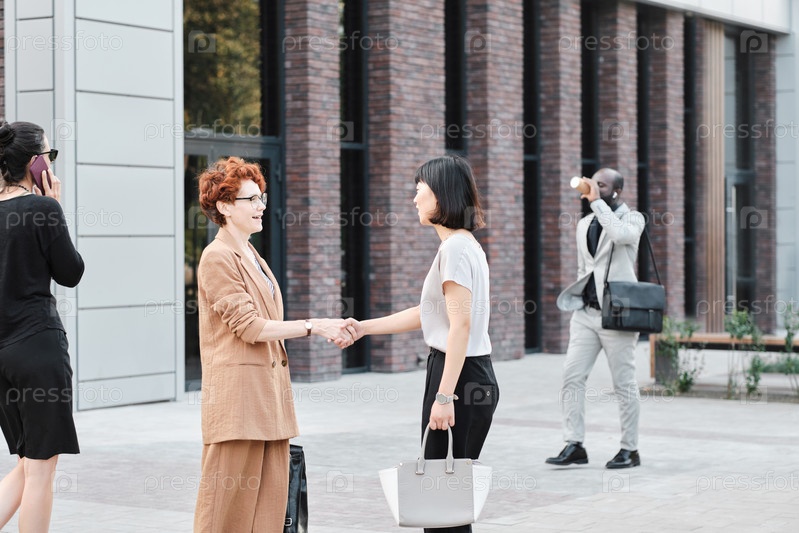Коллеги-женщины приветствуют друг друга
