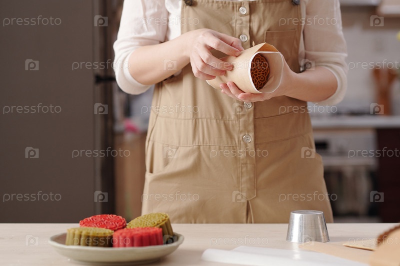 Женщина, упаковывающая выпеченные лунные пироги