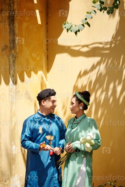 Вьетнамская пара в традиционных платьях