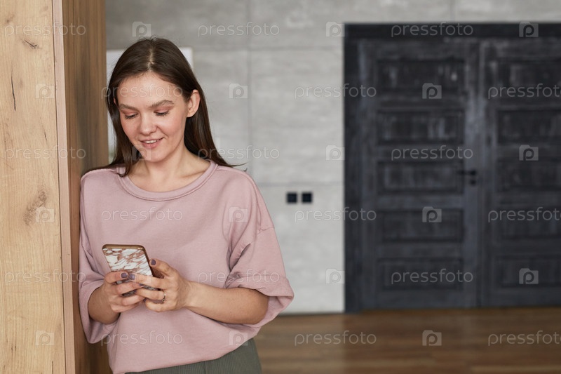 Женщина читает сообщение по телефону