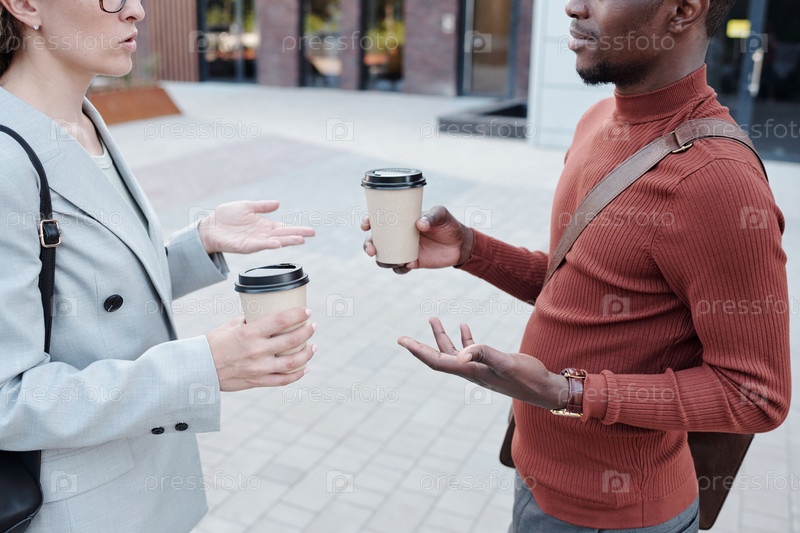 Два молодых межкультурных коллеги с кофе