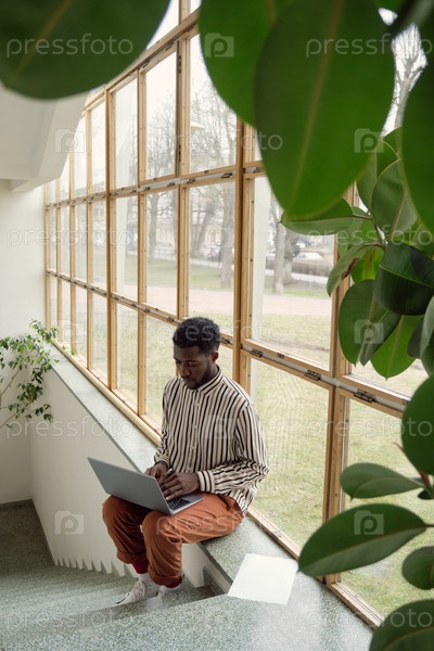 Африканский мужчина работает над ноутбуком