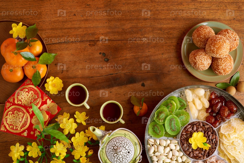 Стол, подготовленный к китайскому Новому году