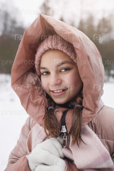 Портрет симпатичной девушки зимой