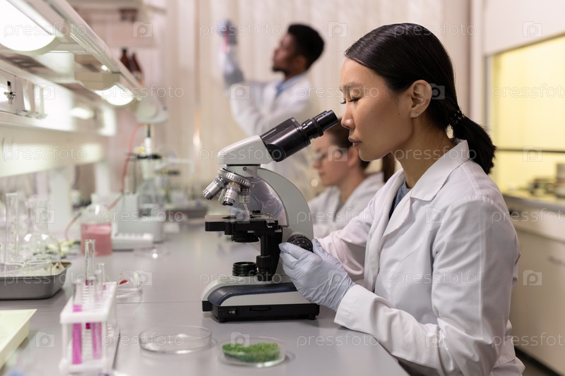Молодая азиатская женщина работает в лаборатории