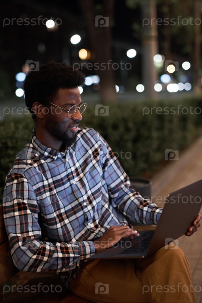 Человек, использующий компьютер в парке