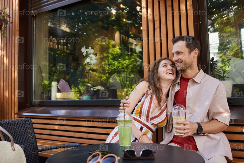 Пара в летнем открытом кафе