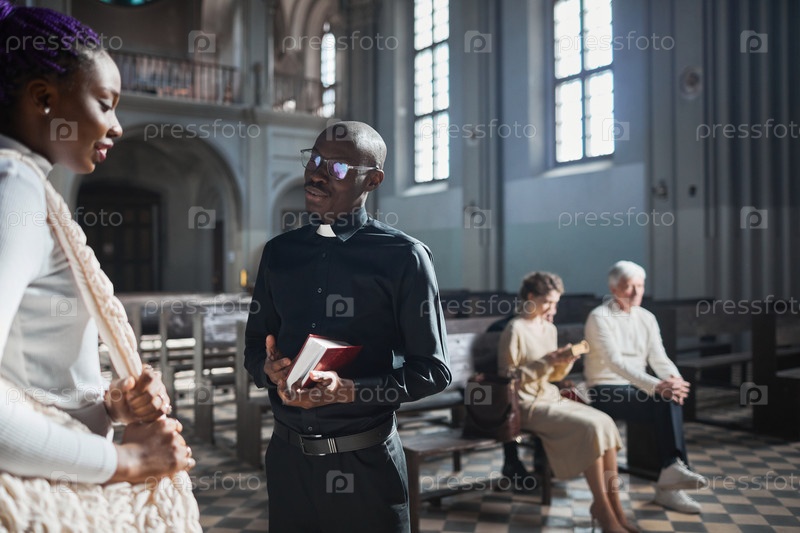 Священник разговаривает с верующими людьми