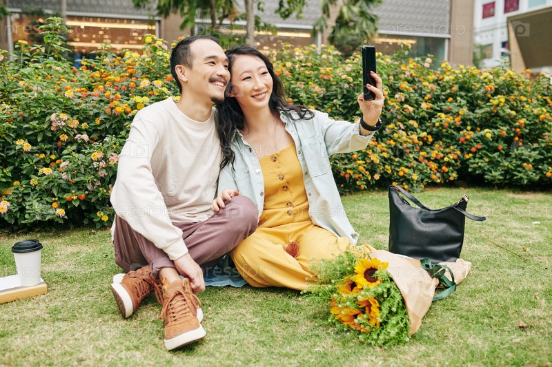 Влюбленная пара делает селфи