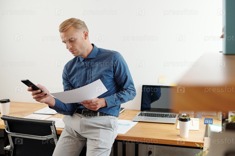 Серьезный бизнесмен отправляет текстовое сообщение