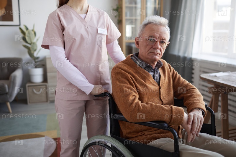 Пожилой человек-инвалид в доме престарелых