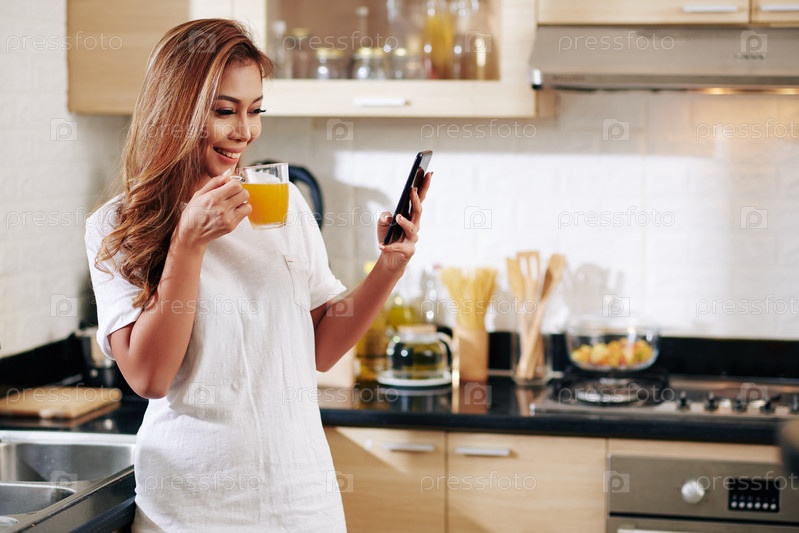 Женщина пьет апельсиновый сок