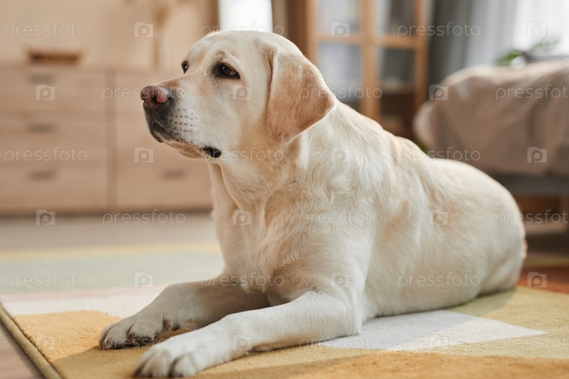 Лабрадор лежит на полу дома