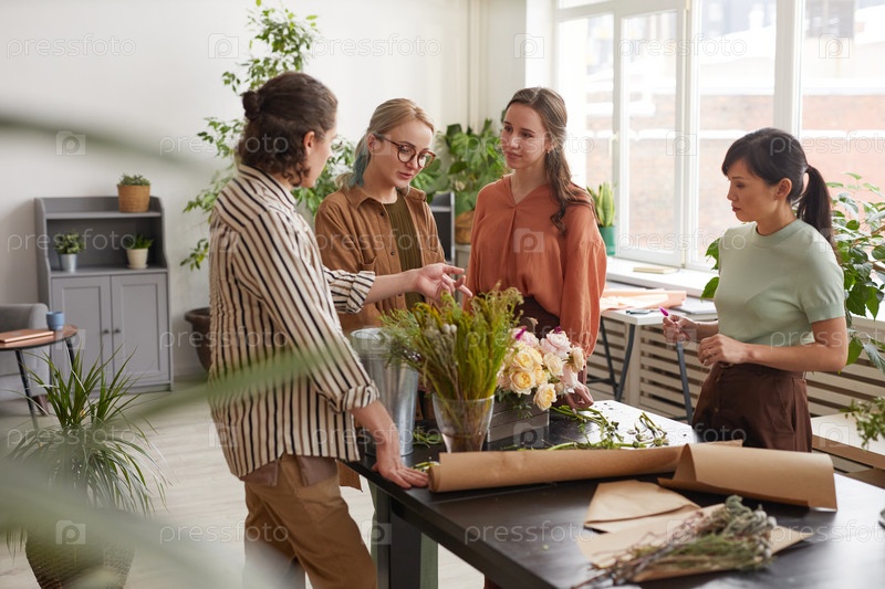 Группа людей, получающих удовольствие от семинара по цветам