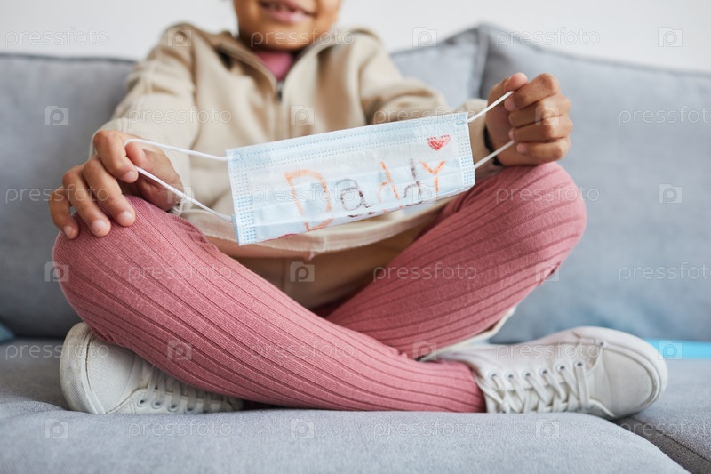 Девочка, держащая маску для папы