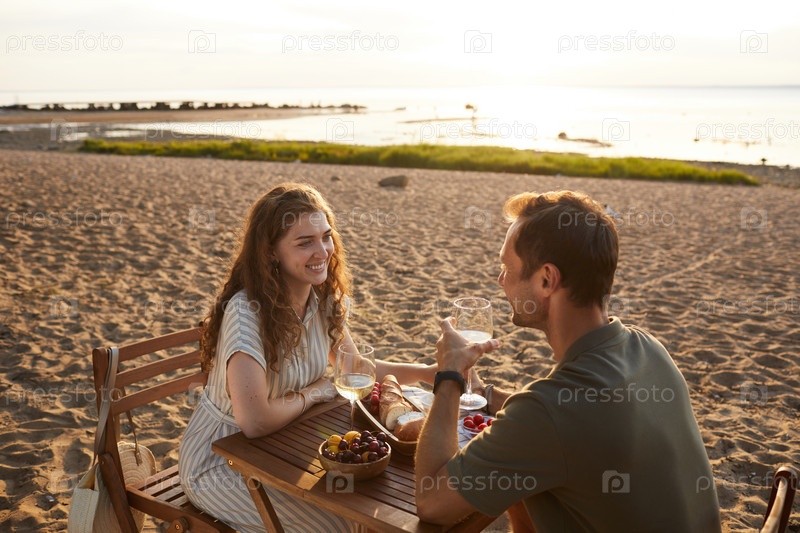 Счастливая пара наслаждается романтическим свиданием на пляже