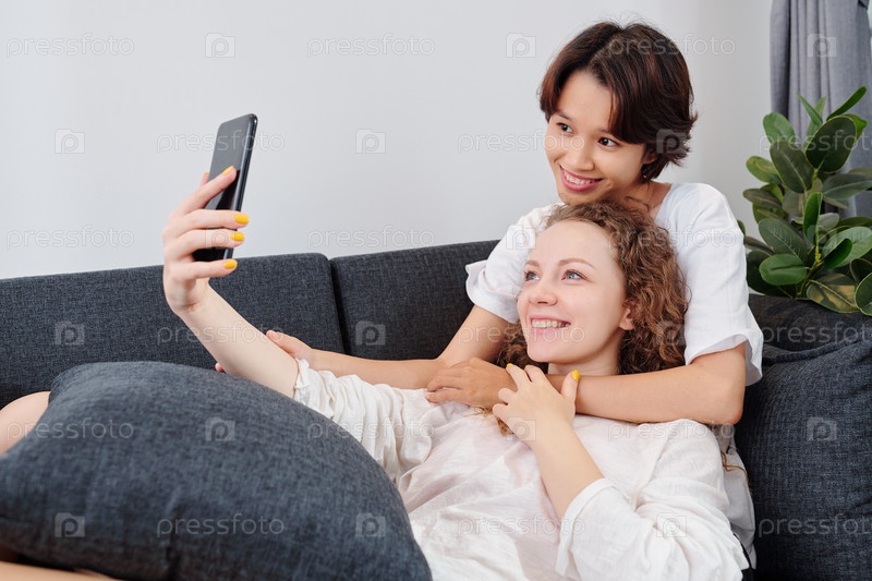Мультиэтническая пара, делающая селфи