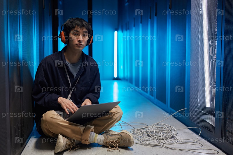 Сетевой инженер в серверной комнате Азиатский