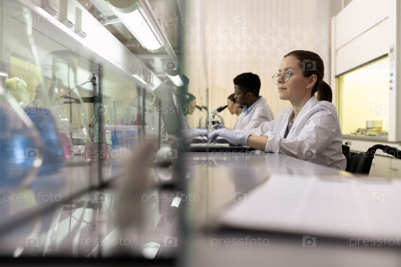 Ряд молодых межкультурных ученых, работающих в лаборатории