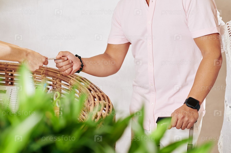 Мужчина платит за номер в отеле