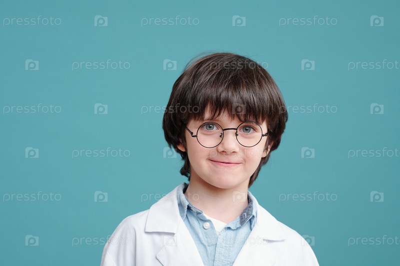 Маленький мальчик в очках и белом халате