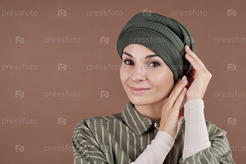Молодая женщина исправляет тюрбан