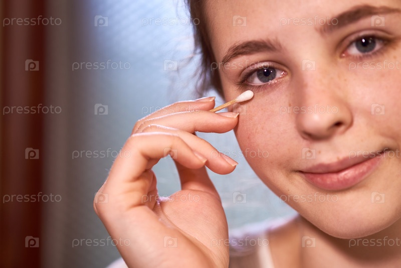 Женщина снимает макияж на глазах