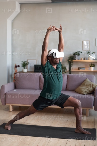 Мужчина практически занимается спортом в комнате дома
