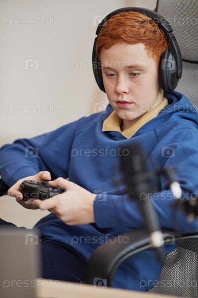 Красноволосый подросток играет в видеоигры