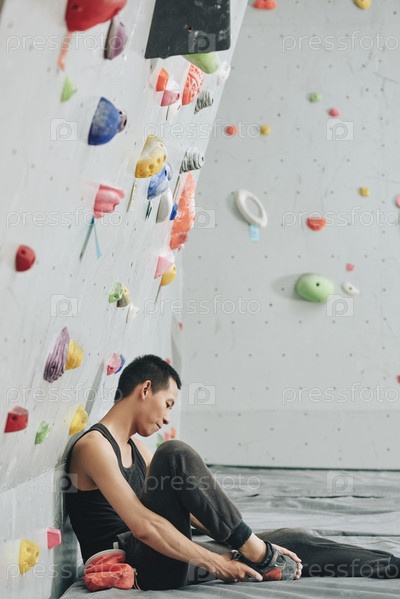Альпинист снимает обувь