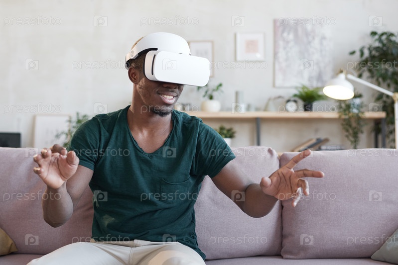 Мужчина развлекается с гарнитурой виртуальной реальности