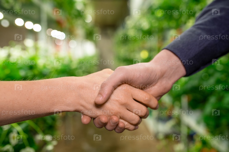 Пожимание рук двух молодых фермеров, приветствующих друг друга