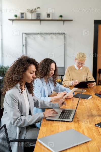 Три современных женщины-менеджеры работают индивидуально