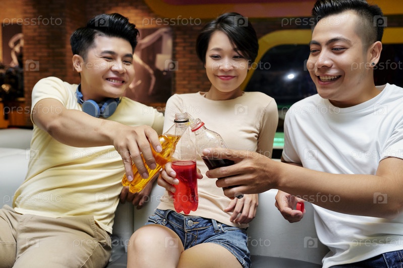 Друзья выпивают соком