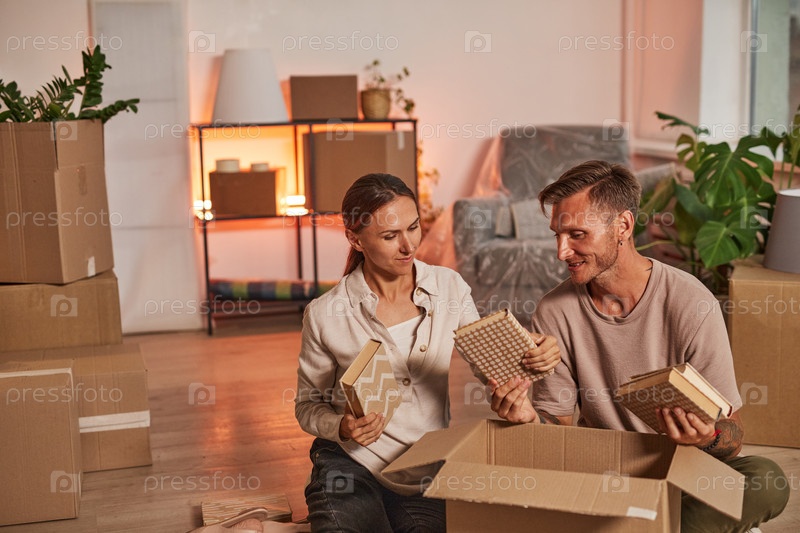 Счастливая пара распаковывается в новом доме