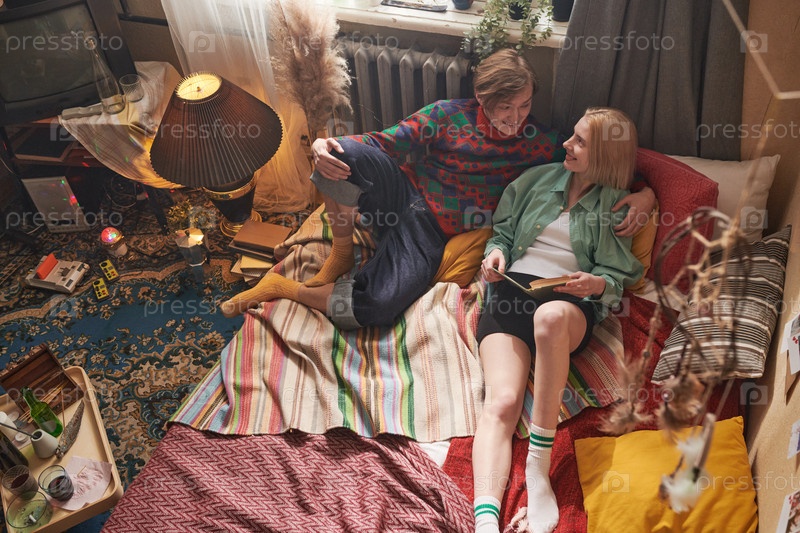 Пара отдыхает в старомодной комнате