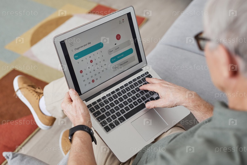 Зрелый мужчина, использующий приложение для управления временем Mature