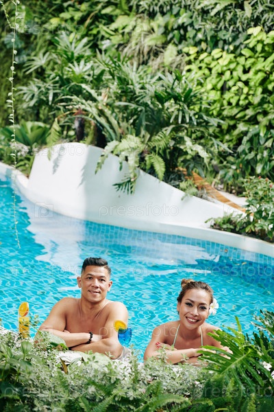 Счастливая пара в бассейне