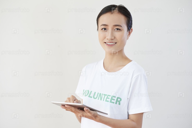 Доброволец с планшетным компьютером