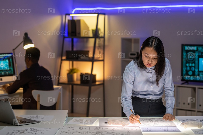 Азиатский дизайнер разрабатывает макет автомобиля