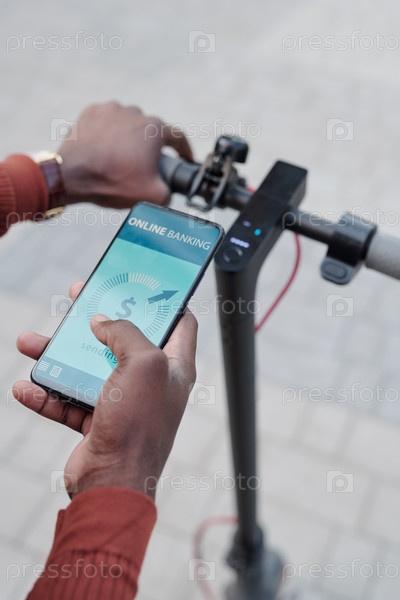 Рука африканского парня во время бесконтактной оплаты