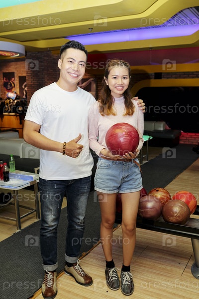 Пара, играющая в боулинг вместе