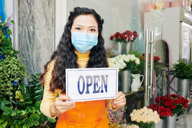 Владелец цветочного магазина в медицинской маске