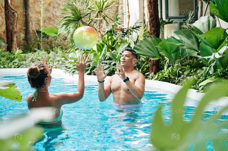 Пара, играющая в бассейн